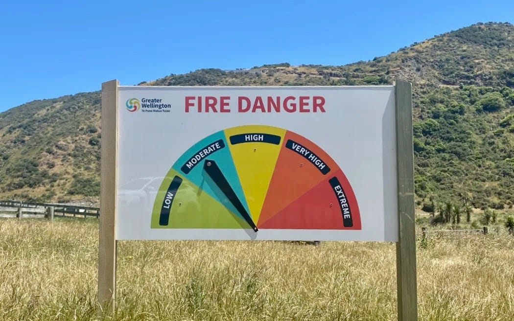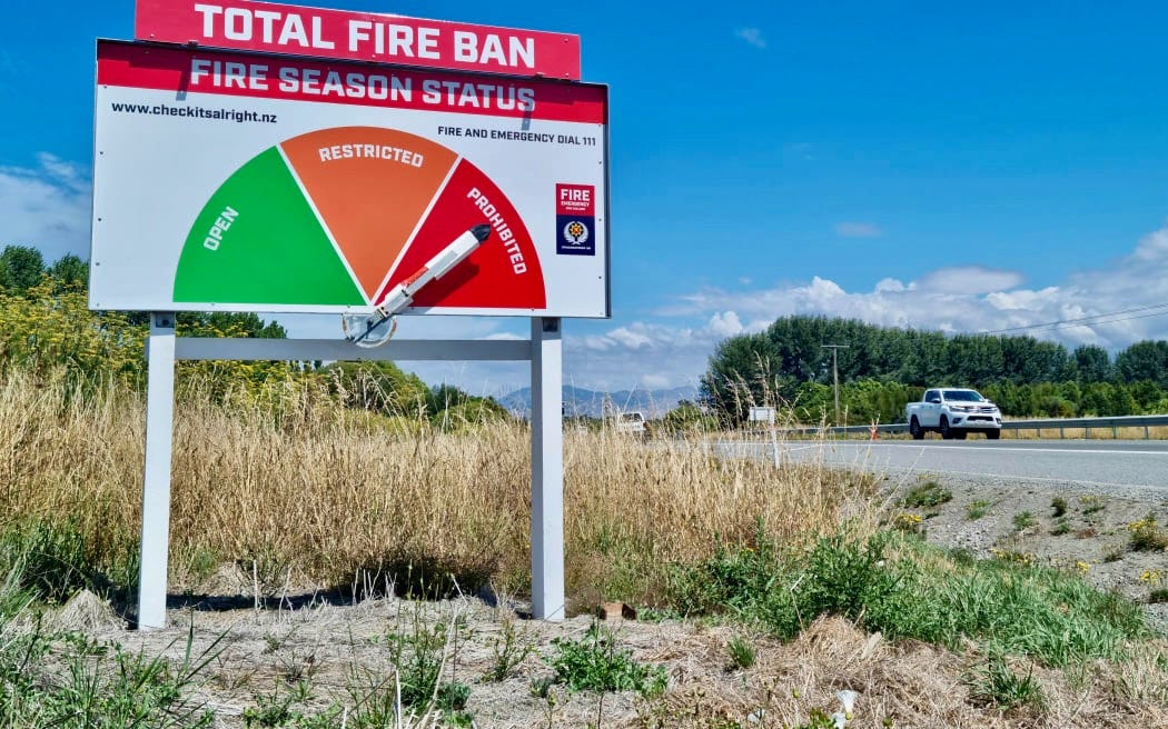 A feature of rural New Zealand are these signs, placed beside highways, warning people about the fire risk: